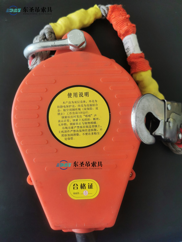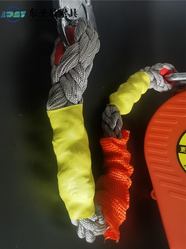 東圣防墜器采用阻燃安全繩在遇到電焊火花、電氣短路等突發火情時,阻燃繩可在650℃高溫下堅持≥15秒不熔斷,為逃生爭取時間.
